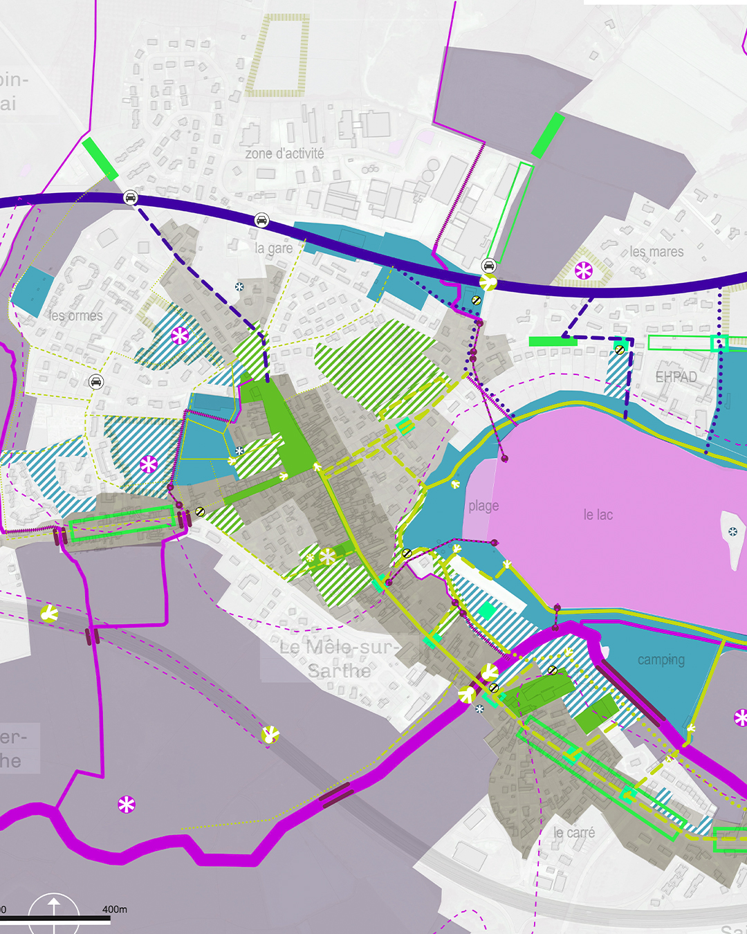 Zeppelin remonte la Sarthe avec Quartier Libre, pour accompagner l'agglomération du Mêle (61) dans l'élaboration de son plan guide des espaces publics : en reprenant le fil des petits ruisseaux qui courent encore sous le lac de la fameuse base de loisirs, nous redessinons avec les élus les grandes lignes du paysage de demain. Entre les arbres monumentaux qui jalonnent la trame urbaine, les friches industrielles qui longent les rivières et la grande place qui accueille la foire aux poulains, il y a tout ce qu'il faut comme pistes pour réancrer la ville dans son milieu !