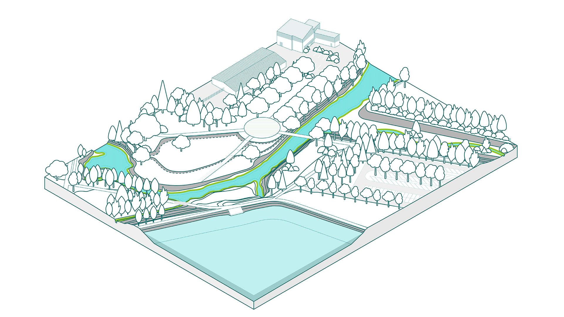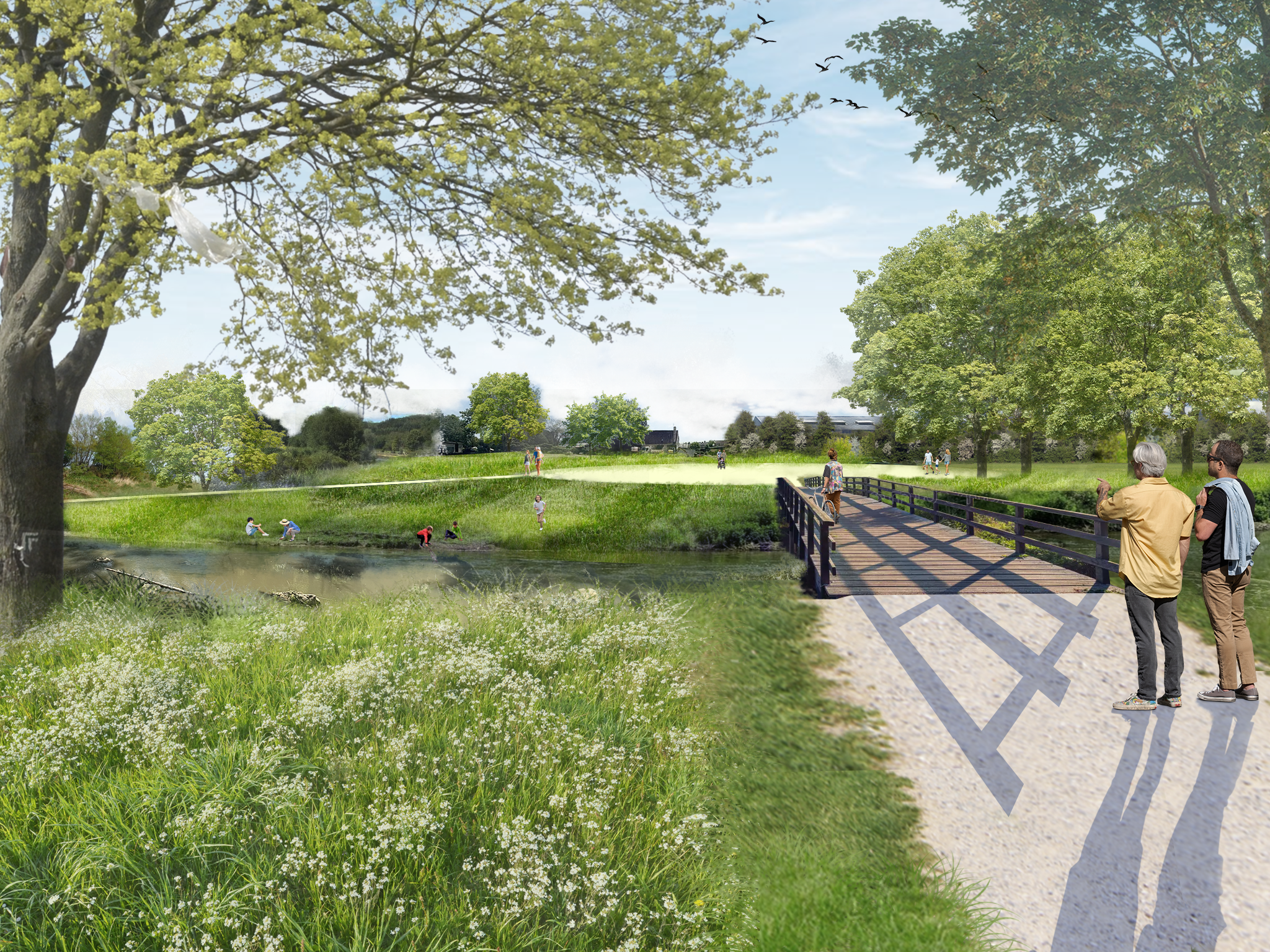 Cette semaine Quartier Libre et Zeppelin viennent de finaliser le plan guide pour l'agglomération du Mêle (61). L’ouverture des milieux et des ruisseaux se concrétise, on commence à y voir plus claire. La trame verte et bleue amorce de nouveaux usages et programmes dans l’agglomération mêloise !