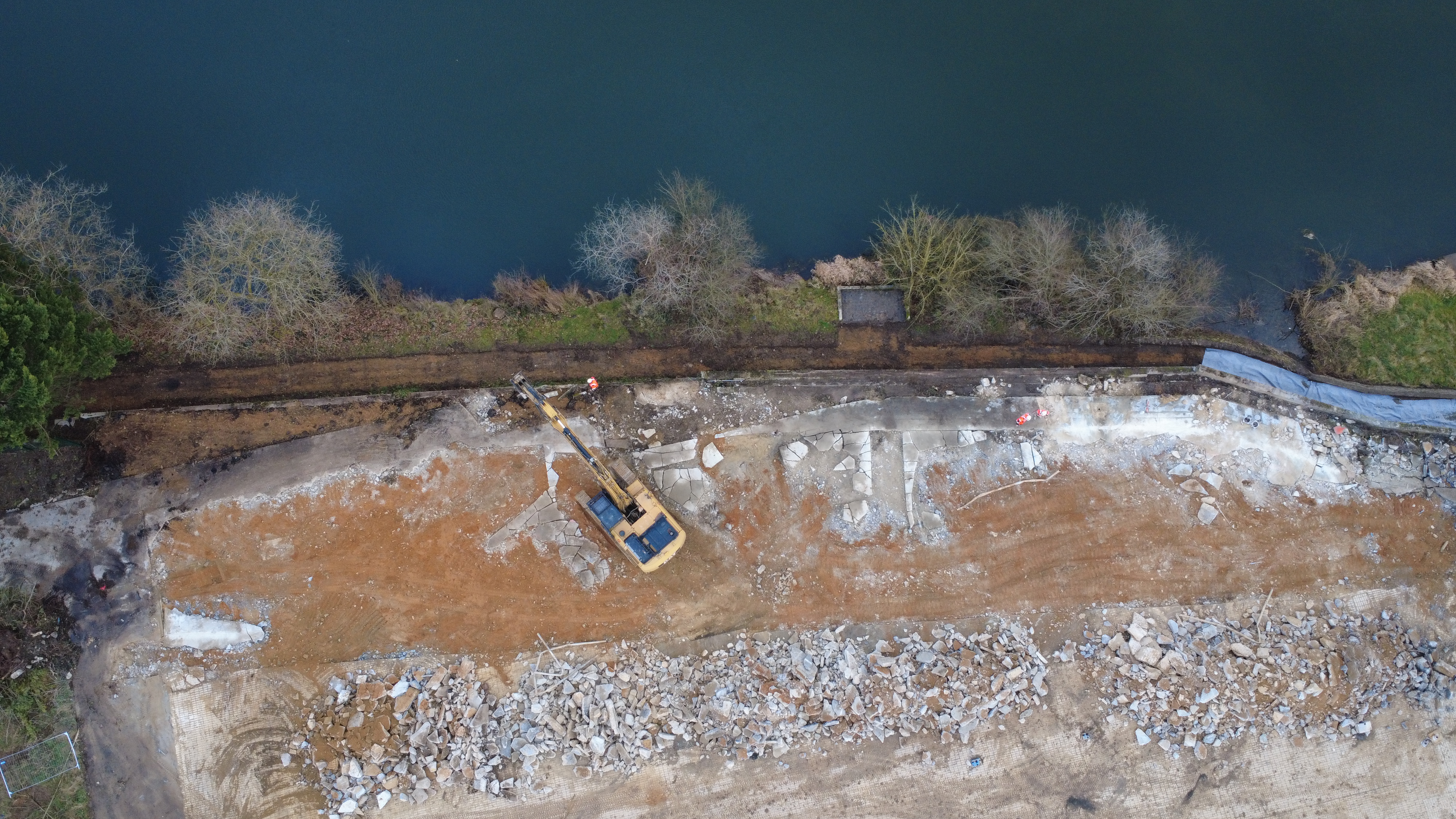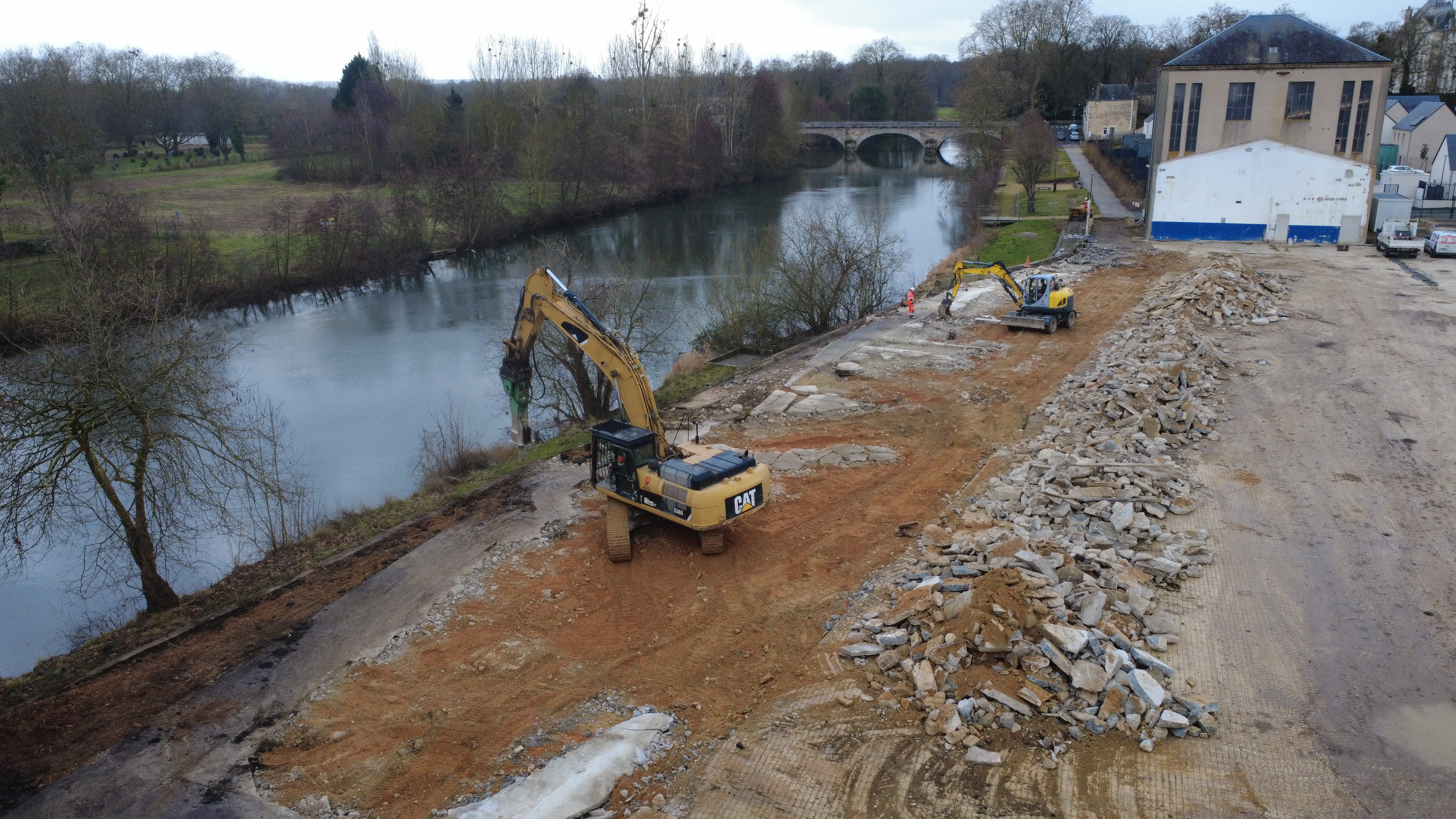 Zeppelin prend de la hauteur sur le chantier des bords du Loir au Lude.
