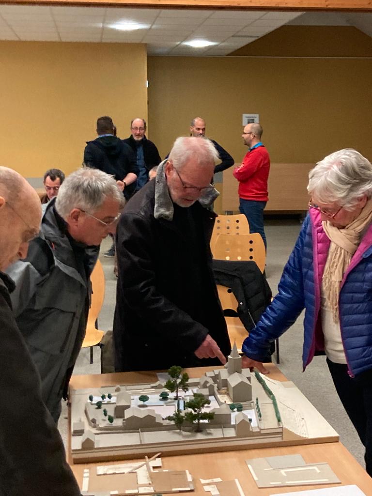 Présentation publique pour le futur aménagement de la Place du 8 mai 1945 à Bréhémont (37) On discute autour de la maquette !
